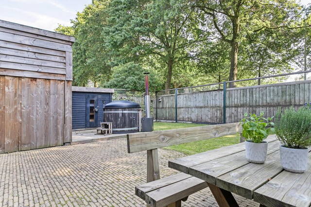 De achtertuin ligt op het zuidoosten. Dankzij deze ideale ligging geniet u de hele dag door van volop zonlicht, wat de tuin perfect maakt voor ontspanning en gezelligheid. Of u nu een kopje koffie drinkt in de ochtendzon, lekker buiten eet met familie en vrienden, of geniet van een barbecue in de late namiddagzon, deze tuin biedt het allemaal. De fraai aangelegde ruimte biedt tevens veel privacy door het tegenoverliggend park en is voorzien van een sauna en hottub waarin u heerlijk tot rust kunt komen.