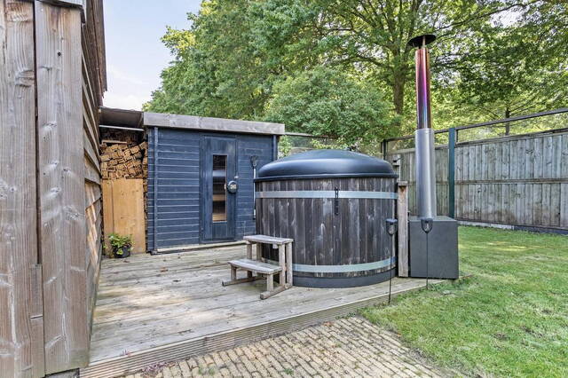 -Ruime en zonnige achtertuin met sauna en hottub;
