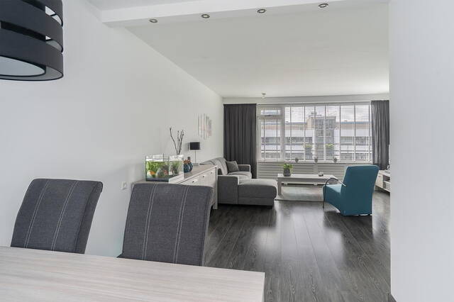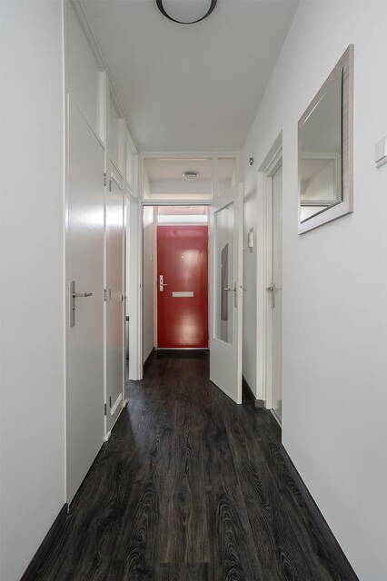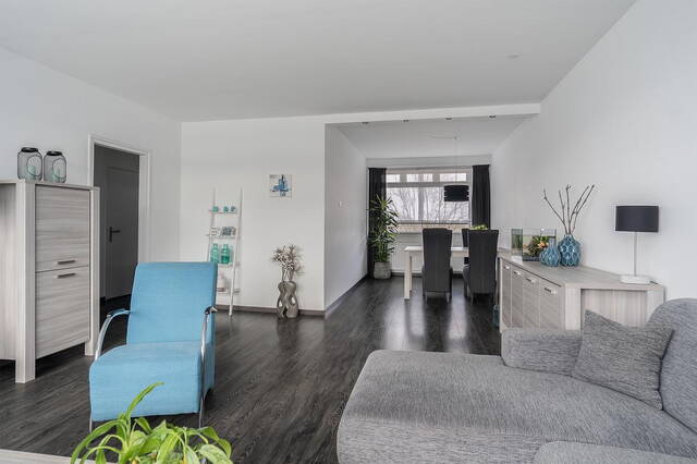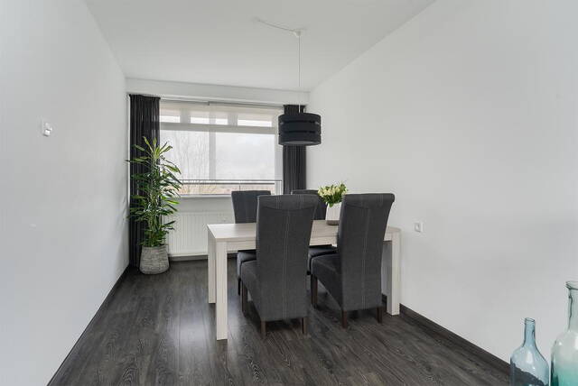 Bij binnenkomst betreedt u de hal, die toegang geeft tot alle vertrekken. De gehele woning is voorzien van een nette laminaatvloer en strak gestucte wanden. De ruime en lichte woonkamer biedt voldoende plek voor zowel een gezellige zithoek als een royale eethoek. Dankzij de grote raampartijen geniet u hier van veel natuurlijk lichtinval.