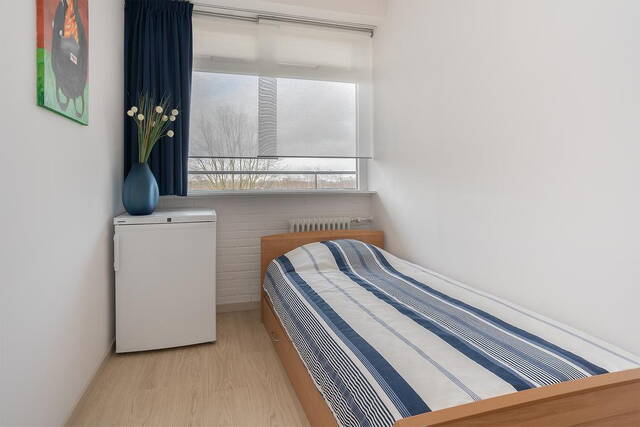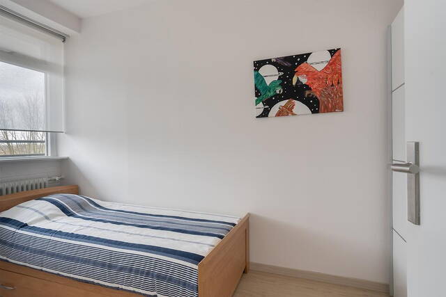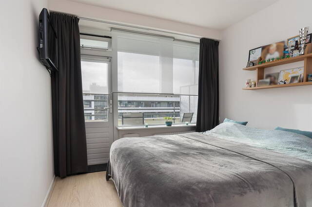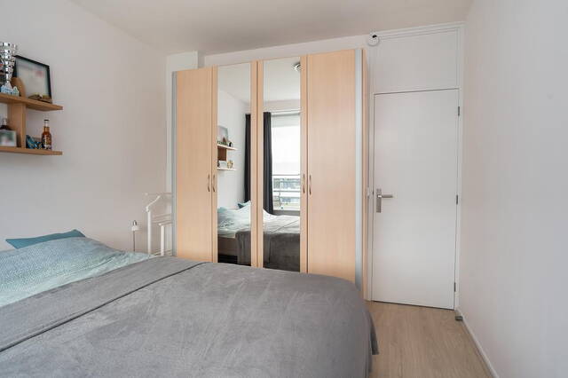 Het appartement beschikt over twee slaapkamers. De hoofdslaapkamer aan de straatzijde geeft toegang tot het balkon. De tweede slaapkamer ligt aan de rustigere achterzijde van de woning. Beide kamers zijn verzorgd afgewerkt en bieden voldoende ruimte voor een bed en kast.
