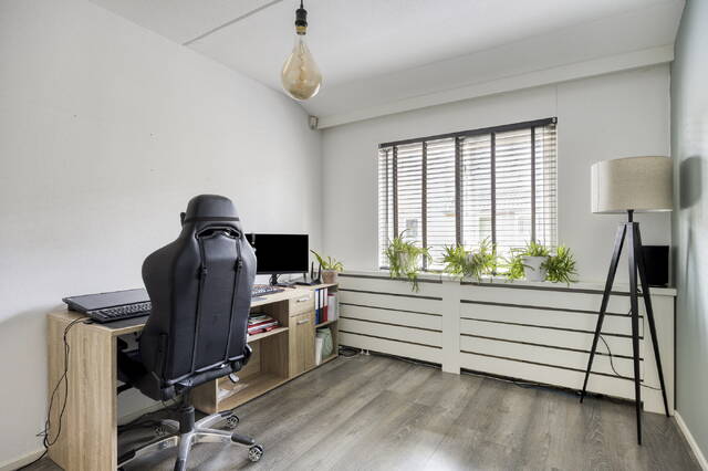 Via een vaste trap bereik je de tweede verdieping. Deze zolder is netjes afgewerkt met een laminaatvloer en beschikt over knieschotten voor extra bergruimte. Dankzij het dakraam (kantelraam) valt er prettig daglicht binnen. Hier bevindt zich ook de aansluiting voor de wasmachine. De woning is aangesloten op stadsverwarming, dus er is géén losse cv-ketel aanwezig. Deze ruimte is zeer geschikt als werkkamer, hobbyruimte, logeerkamer of zelfs als vierde of misschien wel vijfde slaapkamer.
