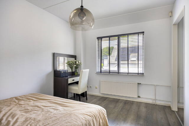 Op de eerste verdieping zijn drie ruime slaapkamers aanwezig, beide voorzien van een nette laminaatvloer, gestucte wanden en grote ramen die veel daglicht binnenlaten.