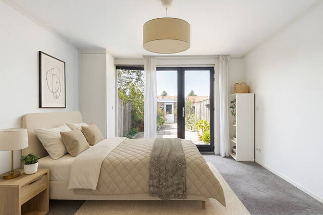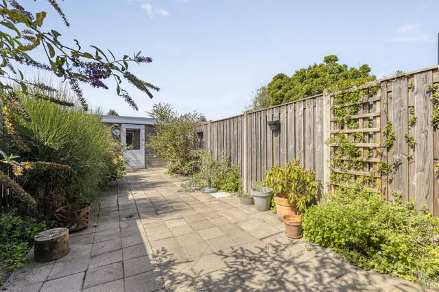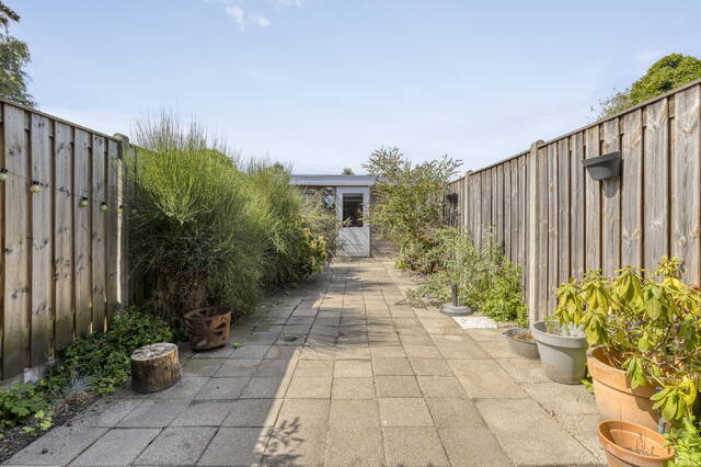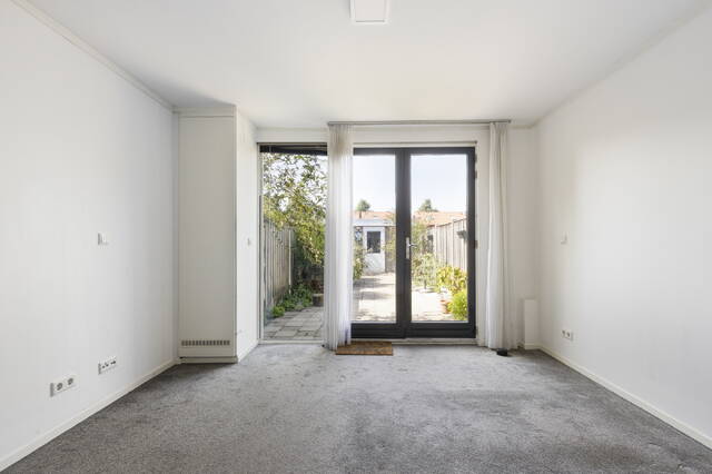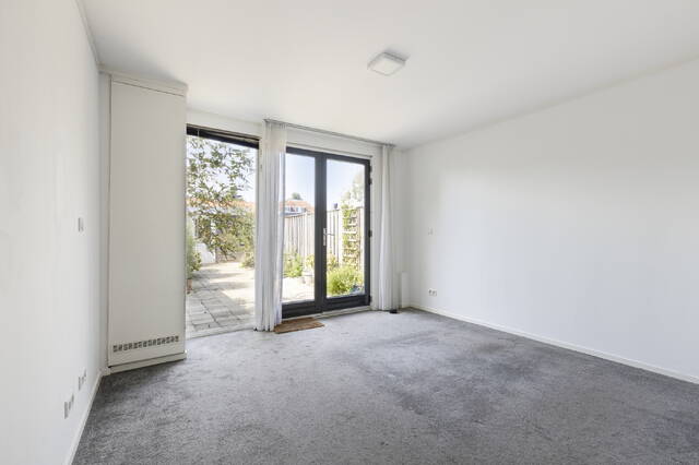 Via de keuken bereik je de slaapkamer, die is uitgerust met openslaande deuren naar de tuin – perfect voor een frisse ochtendstart of om in de zomer de tuin echt bij je leefruimte te betrekken.