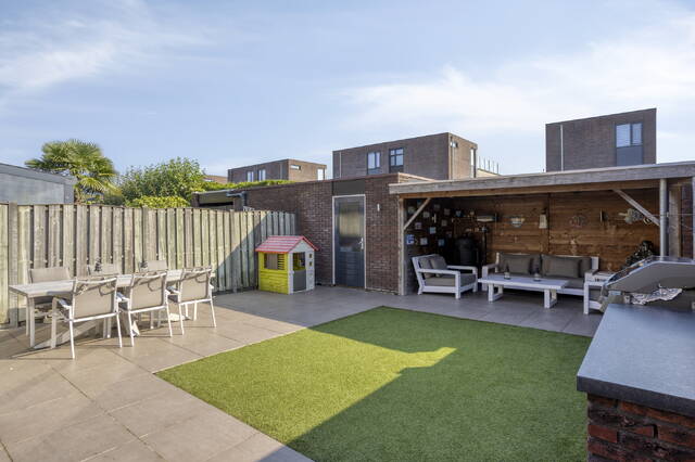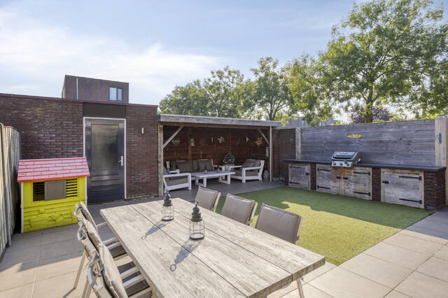 • Ruime overkapping met buitenkeuken — droog, gezellig en klaar voor etentjes buiten