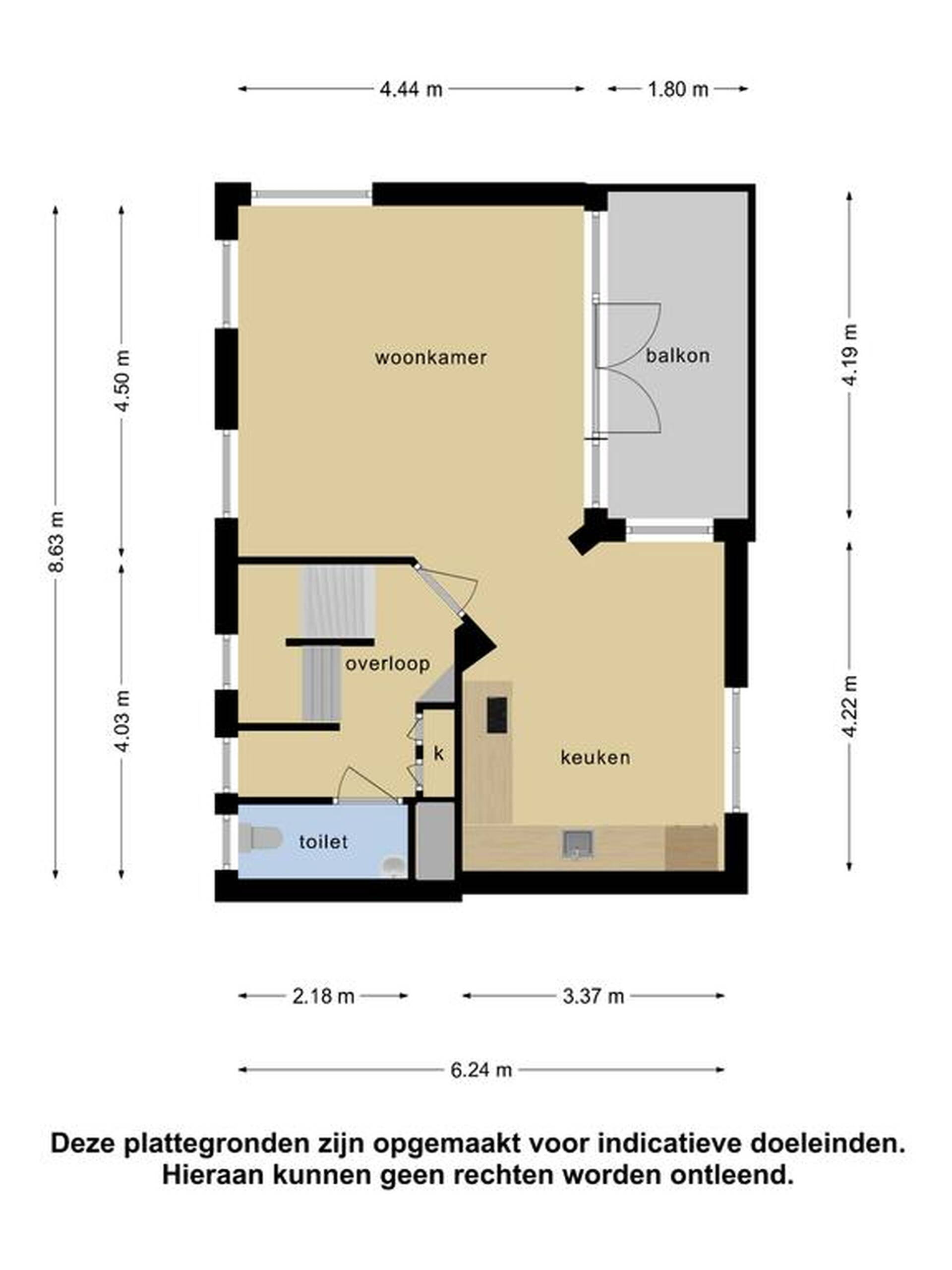 De informatie over deze woning is met grote zorg samengesteld. Ondanks alle zorgvuldigheid die we nastreven, kunnen aan deze informatie geen rechten worden ontleend. De plattegronden zijn indicatief en de genoemde maten zijn circa maten. Hier is om deze reden geen leveringsplicht aan verbonden. De informatie is uitsluitend bedoeld om een goede indruk van de woningen te geven